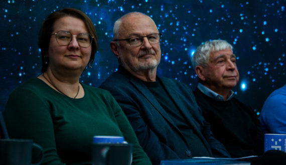 От обсуждения очень маленьких объектов спикеры перешли к обсуждению очень больших. Главная новость по астрофизике от Владимира Корчагина, доктора физико-математических наук, главного научного сотрудника НИИ физики ЮФУ – открытие нанометрового гравитационного волнового фона. В 2023 году астрономы зафиксировали гравитационные волны длиной в несколько десятков световых лет, в тысячи раз больше тех, которые открыли в 2015 году. Сделать это удалось с помощью наблюдения пульсаров: гравитационные волны, проходя через пучок электромагнитного излучения, испускаемого этим типом нейтронных звёзд, искажают его и могут таким образом быть зафиксированы. Учёные выяснили – Вселенная пронизана таким нанометровым гравитационным излучением, возможно, реликтовыми остатками от взрывов древних чёрных дыр.