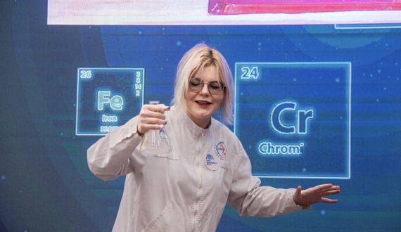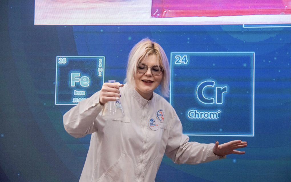 Программа началась с научного ток-шоу. Гости центра погрузились в мир химии и физики вместе с Театром удивительной науки от факультета автоматизации, мехатроники и управления Донского государственного технического университета.