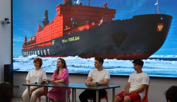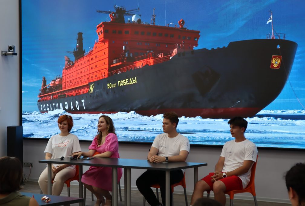 Вечер продолжился неформальной встречей с участниками просветительских экспедиций «Ледокол знаний 2022» и «Ледокол открытий», организованных сетью ИЦАЭ и Госкорпорацией «Росатом». Юные полярники поделились своими впечатлениями от путешествия на Северный полюс.
