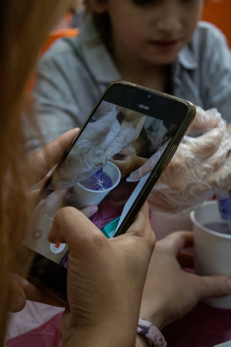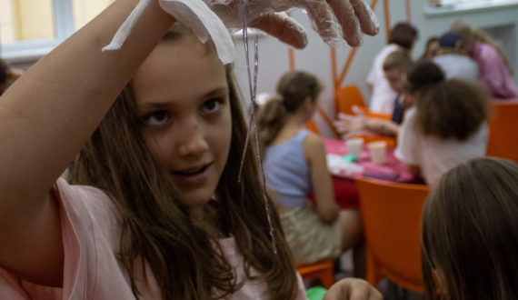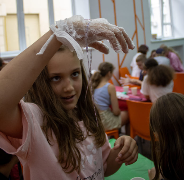 Посетители смогли и сами «похимичить». Так участники «приготовили» полимерных «червяков», создали своими руками лизунов и узнали при этом некоторые факты из химии, например, что при соединении альгината натрия с хлоридом кальция образуется плотная полимерная плёнка, и чем дольше не извлекать «червяков» из раствора, тем толще и плотнее она будет. Такую реакцию активно применяют в молекулярной кухне.