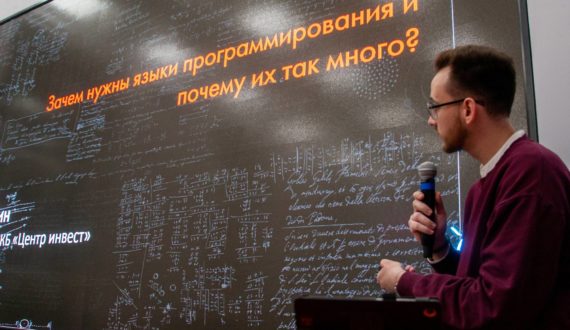 Заключительным спикером мероприятия стал Роман Булыгин, программист отдела интеграции банка «Центр-инвест». Он, в свою очередь, рассказал аудитории про разные языки программирования и про то, для каких целей служит каждый из них.