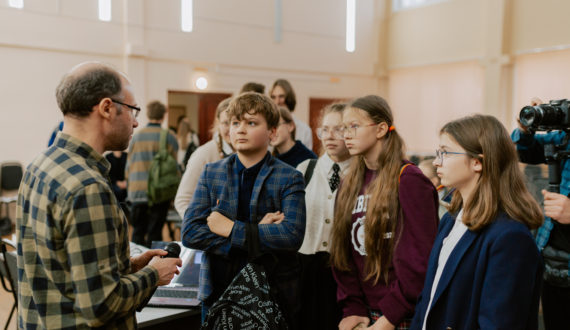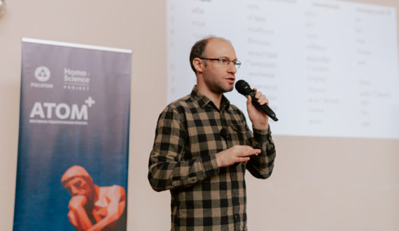 Программа второго дня фестиваля педагогических практик «Атом+» началась с лекции лингвиста Антона Сомина «Слова-мутанты: что происходит, если изменения идут не по правилам». Ученики и педагоги владимирской гимназии №3 узнали, как фонетические процессы в русском и других языках меняют облик слов.