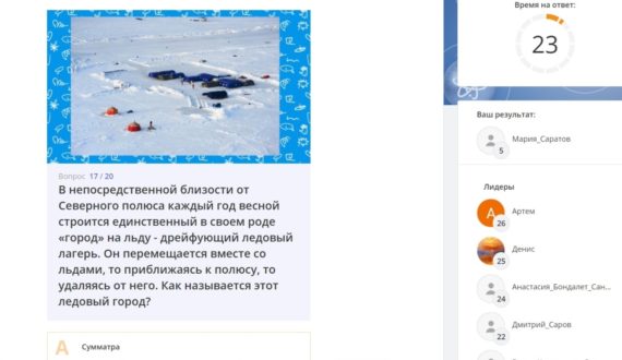 Информационный центр по атомной энергии (ИЦАЭ) Саратова провёл совместно с географическим факультетом СГУ им. Н.Г. Чернышевского 30 января интеллектуальную онлайн-игру квиз “Атомный зачёт”.  Темой игры стала Арктика.