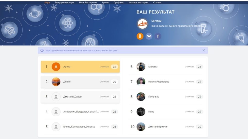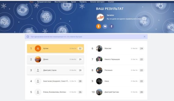 Саратовский онлайн-квиз “Атомный зачёт” собрал игроков со всей России
