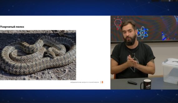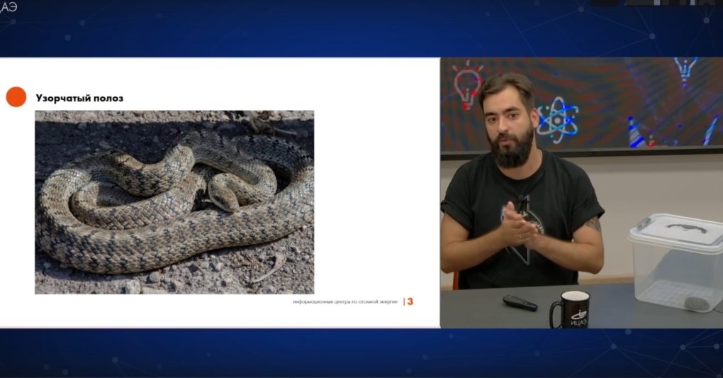 На ток-шоу эксперт принёс с собой в контейнере узорчатого полоза, который был пойман за неделю до мероприятия на одном из частных участков. Артур рассказал о видовых особенностях, окраске, поведении и кормовой базе каждой рептилии, проживающей на территории области.