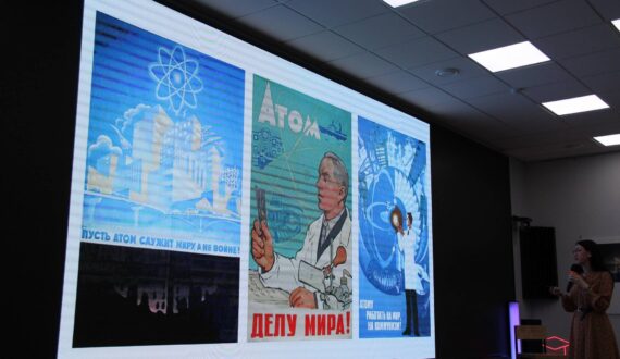«Феномен “Ядерное искусство” (или atomic culture) – это направление искусства, сформировавшееся в 1950-х годах прошлого века как реакция креативного класса на использование ядерного оружия и атомной энергии, – объяснила спикер. – Одни впадали в пугающую эйфорию от открывшихся перед человечеством возможностей, другие воспевали мирный атом, но большинство предостерегало и напоминало о хрупкости нашего мира».