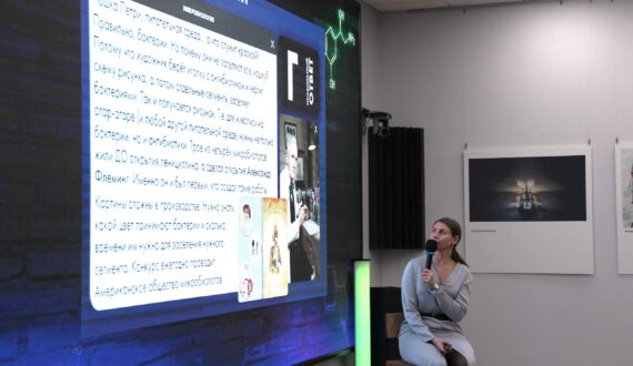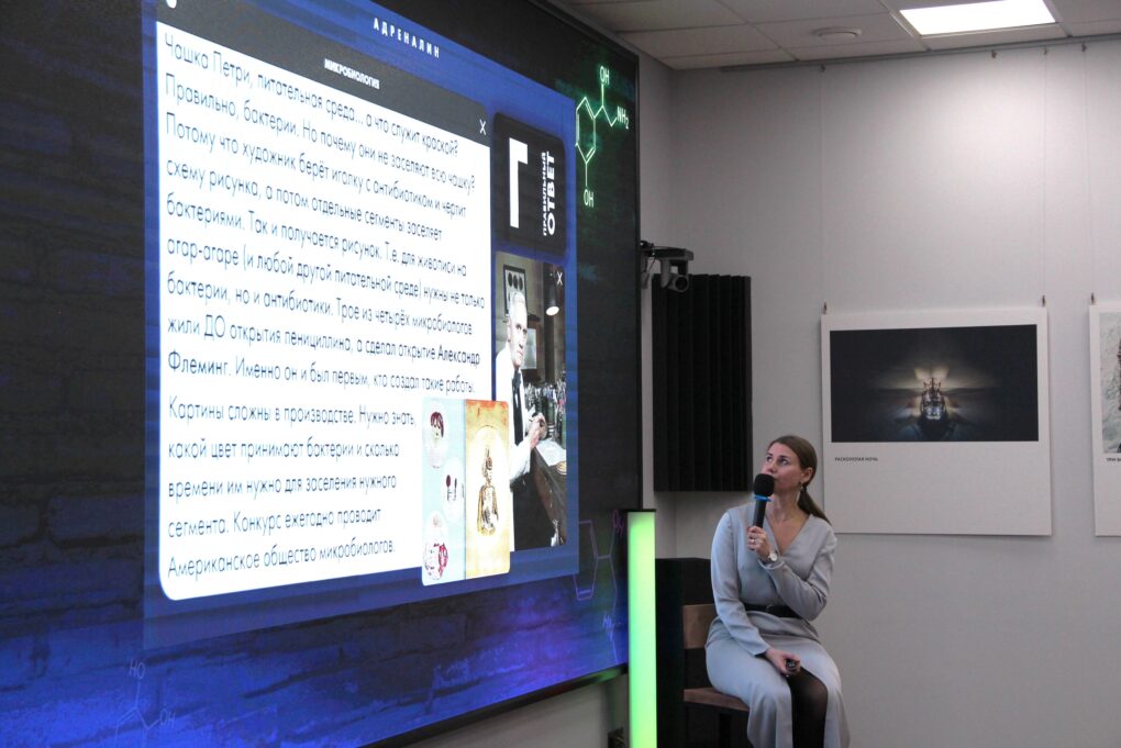 После выступила Алёна Синашова, методист по музейно-образовательной деятельности Красноярского художественного музея им. В. И. Сурикова, специалист по декоративно-прикладному искусству, с лекцией «Как атомное искусство изменило мир». Атомная отрасль – неотъемлемая часть мировой культуры. Открытие атома изменило не только науку, но и визуальное восприятие мира, что ярко отразилось в искусстве, побудило художников к экспериментам с новыми формами, методами изображения и символами, отражающими внутреннюю суть реальности.