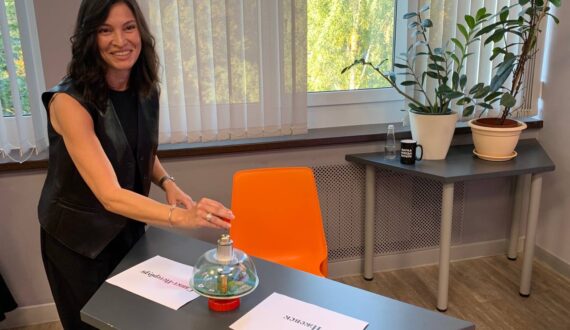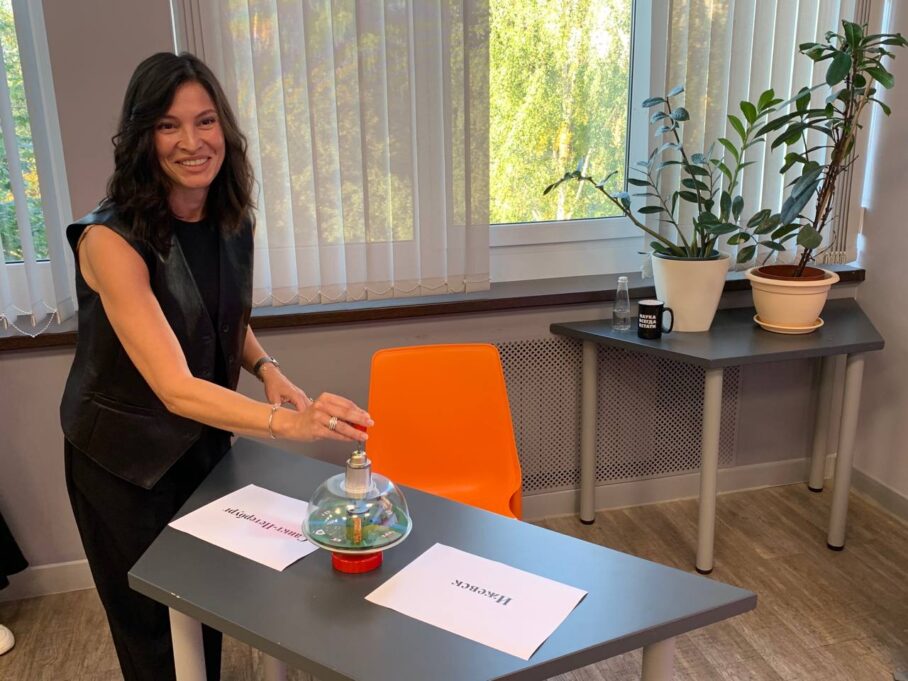 Первой мастер-класс для участников телемоста провела Жаклин Олейник – журналист, телеведущая, создательница медиапроекта «Теледетки» из Петербурга. Она поделилась своими секретами и лайфхаками уверенного публичного выступления. «На самом деле в мастерстве публичного выступления нет правил. Любое выступление очень индивидуально. Главное – это опыт, который нужно нарабатывать. А для этого нужно просто чаще выступать перед аудиторией», — рассказала Жаклин.