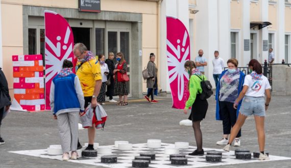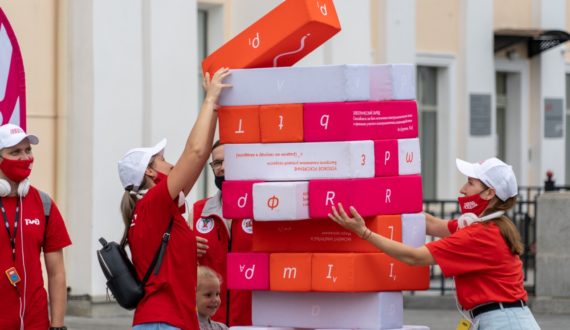 3 августа на перроне прибытия «Поезда Победы» работала открытая научно-познавательная площадка от ИЦАЭ. Екатеринбуржцы и гости города знакомились с физическими терминами, играя в «Атомные шашки», вспоминали названия физических величин с помощью огромной тематической дженги, проверяли свои знания о Белоярской АЭС на детекторе знаний, селфились с Курчатовым и узнавали новые факты об атомных технологиях в игре «Красиво атомы сложились».