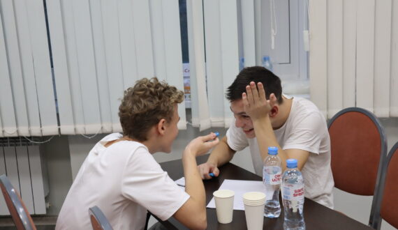 Сергей Абрамов провёл для школьников тренировочную игру. После того, как команды давали свои ответы, эксперт разбирал их и задавал игрокам наводящие вопросы. Он отметил, что в отведённое на обсуждение время участники игры должны активно «накидывать» свои варианты, предлагать логику и искать, за что «зацепиться», но решение об окончательном ответе должен принимать капитан. Все команды, участвовавшие в мастер-классе, отлично показали себя, а победителем тренировочной игры стала команда «Постирония судьбы».