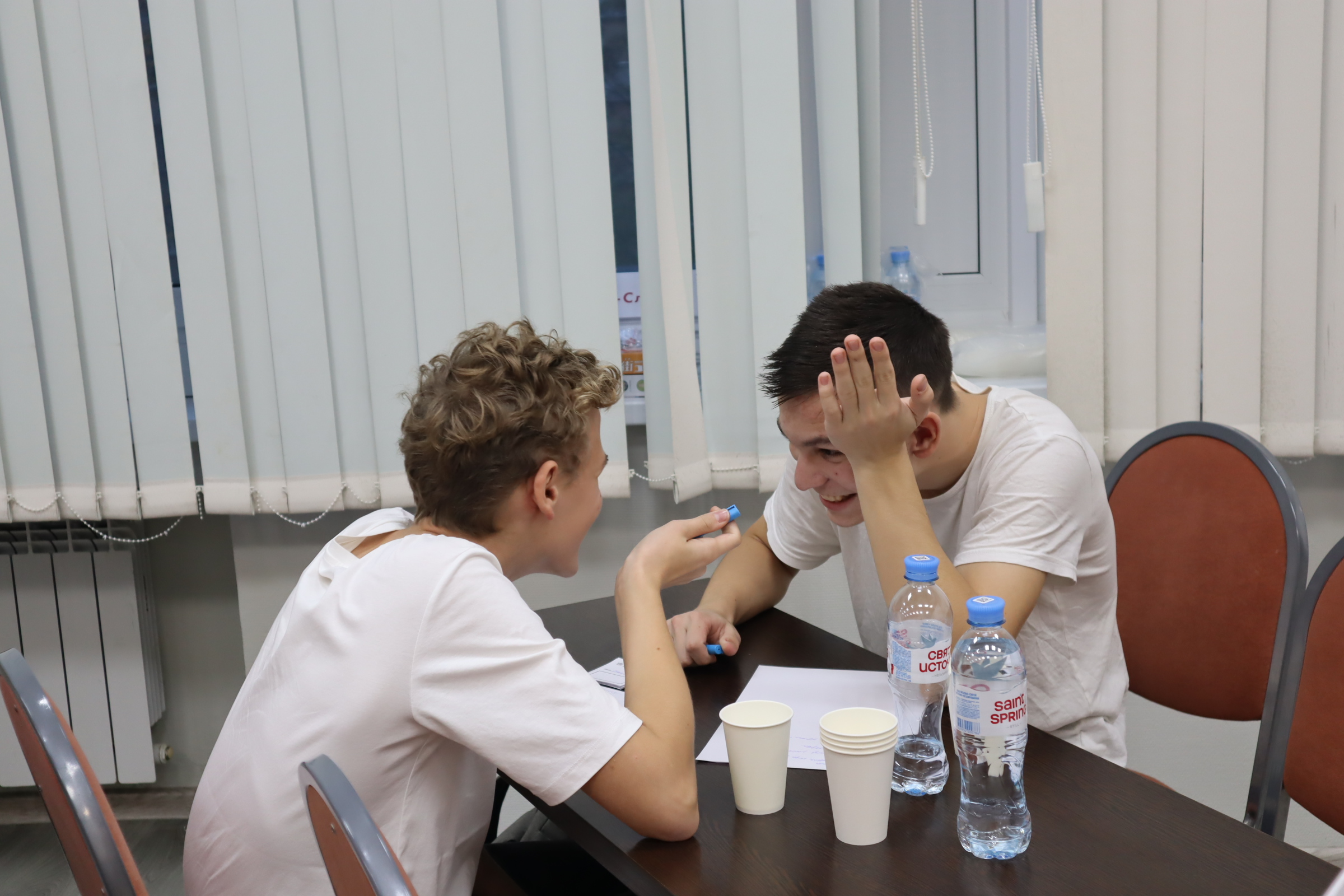 Сергей Абрамов провёл для школьников тренировочную игру. После того, как команды давали свои ответы, эксперт разбирал их и задавал игрокам наводящие вопросы. Он отметил, что в отведённое на обсуждение время участники игры должны активно «накидывать» свои варианты, предлагать логику и искать, за что «зацепиться», но решение об окончательном ответе должен принимать капитан. Все команды, участвовавшие в мастер-классе, отлично показали себя, а победителем тренировочной игры стала команда «Постирония судьбы».
