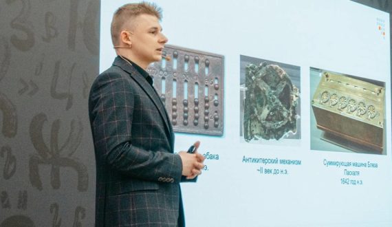 Первым выступил спикер из Томска Ян Яблонский, преподаватель ИТ-академии ТУСУРа, с рассказом о языках программирования и о том, можно ли писать на них стихи. Ян объяснил, что в основе всех современных компьютерных вычислений лежат процессоры, способные решать ограниченное число задач. Чтобы решить более сложную задачу, её надо разбить на простые, представить в виде алгоритма и передать процессору в понятном ему виде. Проблема в том, что «язык», на котором принимает такие инструкции процессор, не совпадает с языком, на котором говорят люди.