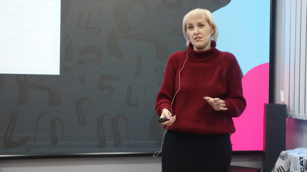О связи речи и мышления рассказала спикер из Красноярска Анна Трапезникова, кандидат филологических наук, доцент кафедры коррекционной педагогики КГПУ им. В. П. Астафьева. Её выступление было посвящено психолингвистике, научной дисциплине на стыке психологии, лингвистики и целого ряда других наук, изучающей взаимоотношение языка, мышления и сознания.