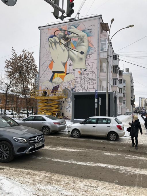 «По нашему опыту, а мы работаем более 20 лет, холод больше влияет на художника, а не на картину, — ответил на это один из создателей изображения Константин Рахманов. — Нам приходилось выходить на работу в толстых куртках и ватных штанах, и менять каждые полчаса баллончики с краской. Но на долговечность росписи это не повлияет».