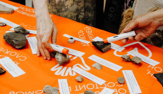 Вечер завершился мастер-классом по дозиметрии: у каждого желающего была возможность измерить уровень радиации любого из древних экспонатов. Интересно, что повышение радиационного фона отдельных объектов связано вовсе не с их возрастом, как предположили многие посетители, а с тем, какие породы напрямую контактировали с тем или иным живым организмом, например, аммонитом, который, как правило, крепится к пириту, марказиту или другим минералам.