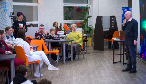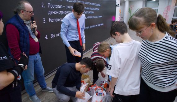После теоретической части гости ИЦАЭ перевоплотились в изобретателей на мастер-классе по дизайн-мышлению. Участники из самых простых материалов создали прототипы устройств для решения нескольких экологических проблем, вызванных глобальным потеплением. Мастер-класс провели председатель правления Челябинского регионального отделения Союза дизайнеров России, доцент кафедры сервиса и технологии художественной обработки материалов ЮУрГУ, основатель проекта «Дизайн-события» Павел Писклаков и преподаватель Международного института дизайна и сервиса, член Союза журналистов и Союза дизайнеров России Рифат Абдрашитов.