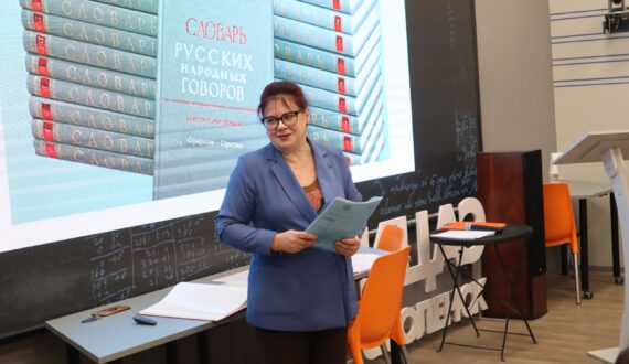 Кроме примеров слов и выражений, свойственных только смоленскому говору, спикер познакомила участников мероприятия со словарями и книгами, посвящёнными говорам. По словам Натальи Петровой, «Словарь русских народных говоров», «Словарь смоленских говоров», «Лексический атлас русских народных говоров» и диалектологическая (фонетическая) карта европейской части России, которая, кстати, существует только в бумажном варианте, подарили слушателям возможность соприкоснуться с изучаемой проблемой, увидеть территориальное лингвогеографическое деление говоров на группы, их названия.