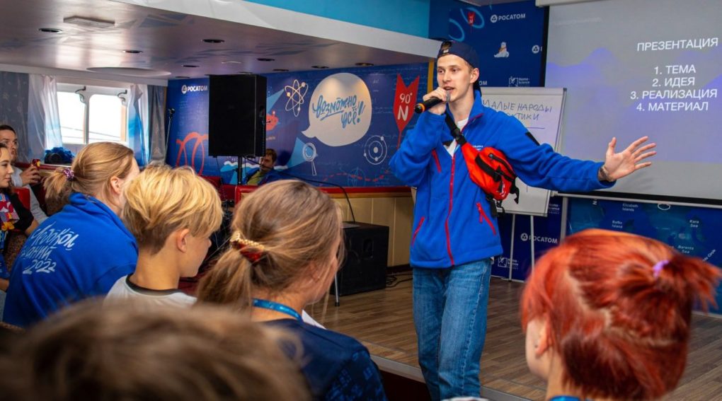 Экспедиция на Северный полюс для талантливых детей «Ледокол знаний 2022», которую организует сеть Информационных центров по атомной энергии (ИЦАЭ) при поддержке Госкорпорации «Росатом», проходила с 8 по 17 июля. Во время рейса 70 одарённых ребят со всей страны, в числе которых – выпускник школы №17 города Смоленска Никита Феоктистов – познакомились с красотой Арктики и создали уникальные Art & Science проекты.
