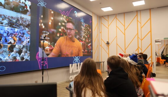 Вопросы к новогодней игре записали интересные спикеры из разных точек страны. Например, популяризатор науки Андрей Акатов, старший преподаватель кафедры инженерной радиоэкологии и радиохимической технологии Санкт-Петербургского государственного технического университета, советник по образованию информационного портала «Российское атомное сообщество». Из его вопроса участники игры смогли узнать, что вдоль борта ледокола пропускают воздух, чтобы снизить его трение об лёд.