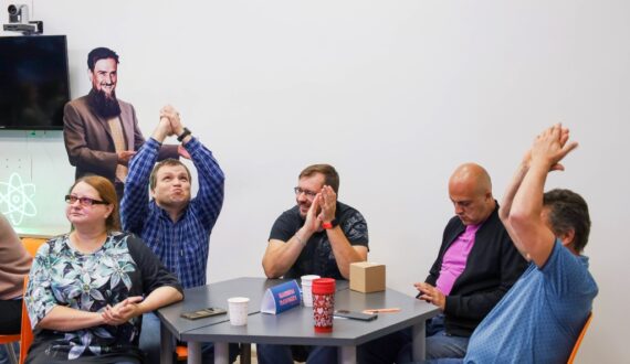 В седьмой игре в ИЦАЭ Саратова приняла участие новая команда – «Тайные игры». Капитан команды Роман Севостьянов рассказал, чем ему запомнилась игра: «Прекрасное техническое сопровождение, приятная дружеская атмосфера, вопросы, заставляющие думать немного по-другому, по сравнению с обыденной жизнью! Ты для себя уже выиграл, если узнал что-то новое! Будем еще участвовать, чтобы прокачать свой мозг»