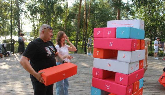 Серию мероприятий открыли фирменные «Большие игры» ИЦАЭ. Семьи соревновались за победу в «Атомных шашках» – это увеличенная версия классической игры с большим полем для игры и крупными фигурами, играть которыми удобно даже самым маленьким. Игра «Тайны атома» с вопросами из области атомных технологий привлекла внимание младших школьников. Также на площадке была представлена любимая игра сети ИЦАЭ – «Хронограф» с большими карточками. Любители викторин состязались в правильности ответов на вопросы викторины из профильной области центра для интерактивного «Атомного чемоданчика». А малыши знакомились с формулами и проявляли ловкость, играя в гигантскую «Физическую дженгу» из мягких блоков.
