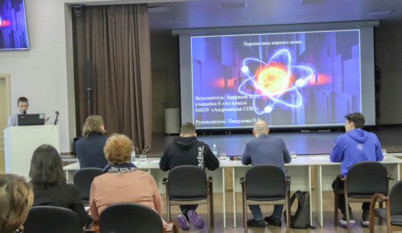 — Никита Титков, 11 класс МБОУ» СОШ № 21 г. Владимир», тема «Современные радиационные технологии на службе человека». ИЦАЭ Владимира регулярно организует совместные проекты с детским технопарком «Кванториум», направленные на популяризацию науки и атомных технологий.