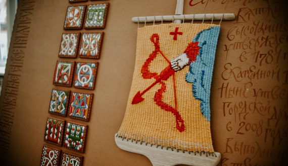 «В кириллической традиции буквы могли обозначать ещё и какую-то цифру. Так Ш – это сто. Поэтому она сделана из ста кусочков домоткани», – пояснила кандидат культурологии Людмила Зорина. Появились в зале и буквы ИЦАЭ.