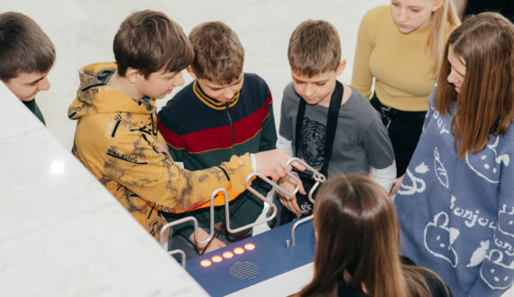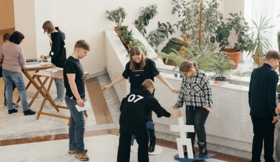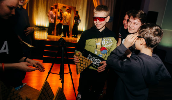 Цвет и музыку соединила локация «Цветовой оркестр». Цветные строительные каски превратились в музыкальные инструменты, сыграть на которых смог любой желающий. Логичным завершением научного путешествия стала фотозона «Большой калейдоскоп» в форме полигекса. Все желающие смогли сделать цветное фото на память и забрать его с собой.