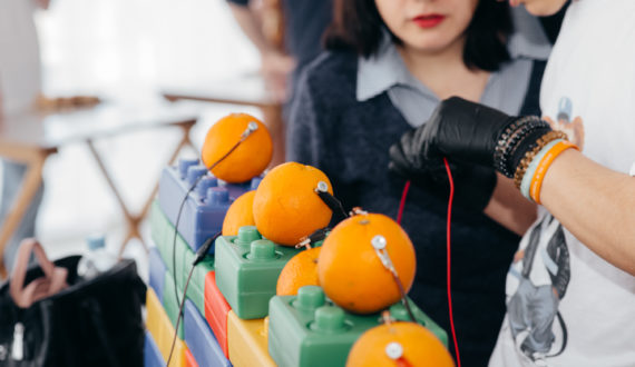 Тему цвета и сенсорного восприятия объединили сразу несколько активностей. На локации «Рука гения» посетители фестиваля, прикладывая руку к неоновому сканеру, получали карточку с описанием, на какого из известных учёных они похожи. Назначение предмета и его цвет по собственным тактильным ощущениям курчатовцы пытались угадать на локации «Наука наощупь». А реверсивные очки на локации «Оптический челлендж» позволили посетителям потренировать навык черчения: они на выбор рисовали простую геометрическую фигуру или писали слово «атом», видя изображение перевёрнутым.