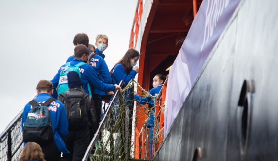 В уникальную экспедицию отправились победители Всероссийского детского интеллектуального конкурса «Ледокол знаний», проведённого в рамках празднования 75-летия атомной промышленности, победители Турнира молодых профессионалов (ТЕМП) Госкорпорации «Росатом», представители Российского движения школьников, участники Всероссийского конкурса «Большая перемена», других олимпиад и конкурсов. Это не только будущие математики, физики, биологи, но и музыканты, художники, литераторы.