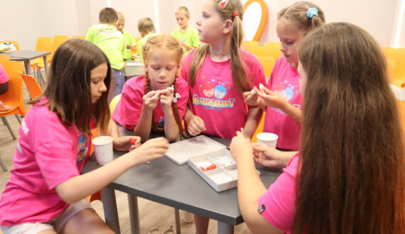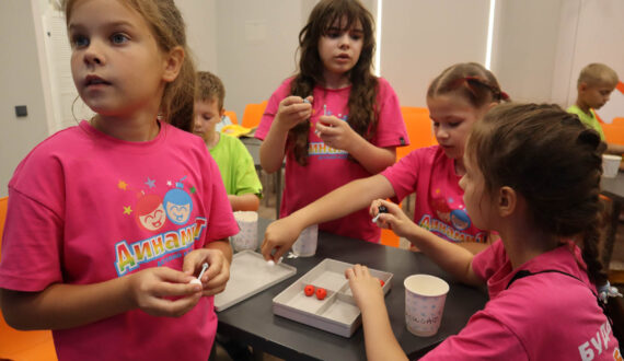 Открыл программу атомный практикум «Из чего всё состоит?», на котором самые маленькие гости ИЦАЭ познакомились со строением вещества и строением атома. Мальчики и девочки узнали о таблице Менделеева и о том, как химические элементы получили своё название.
