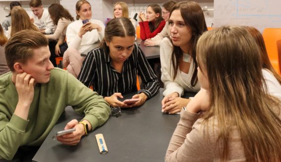 После лекций студенты ИГМА объединились в команды, чтобы сыграть в азартную интеллектуальную игру «Адреналин. Экология жилища».