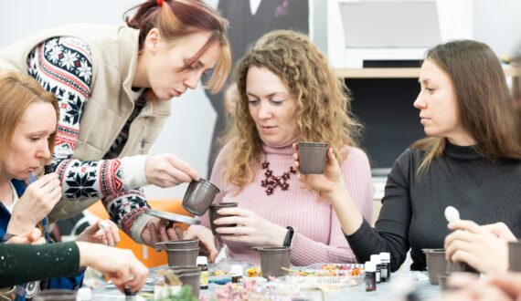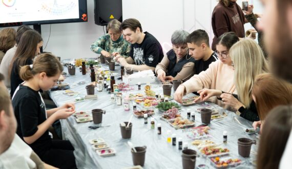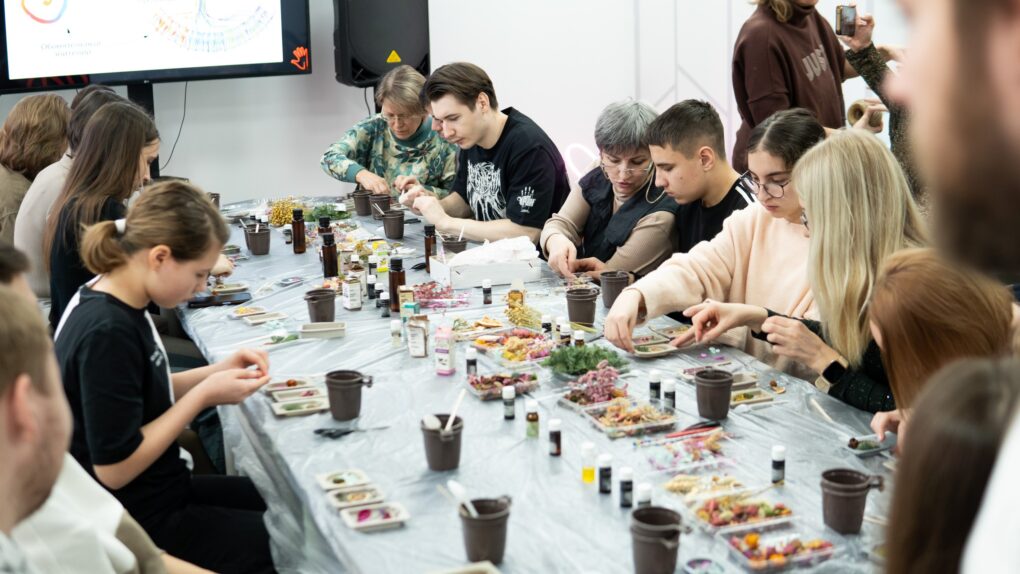 Мастер-класс по изготовлению воскового саше проводили специалисты арт-студии «Светло». Гости центра смогли подготовить цветочные композиции для украшения, выбрать разные ароматы и создать для себя ароматические саше в трёх вариациях. Процесс создания душистого аксессуара сопровождался презентацией про работу обонятельной системы.
