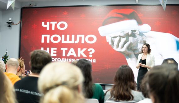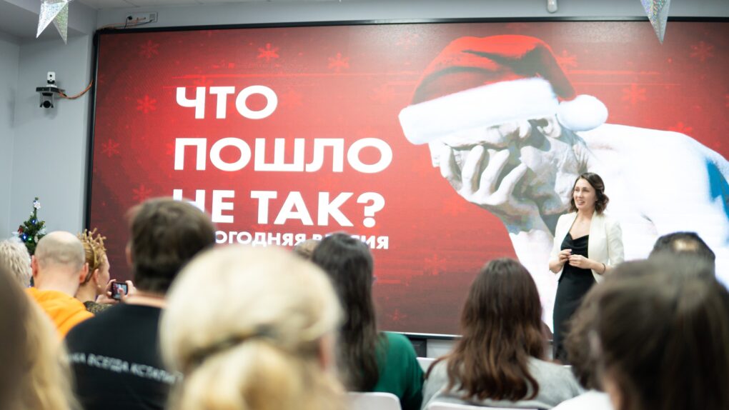 После историй учёных на импровизированную сцену могли выйти гости ток-шоу и в формате «открытого микрофона» за три минуты рассказать свой случай, когда что-то пошло не так в тематике нового года.