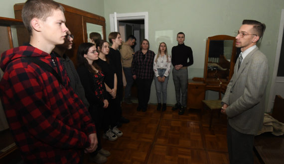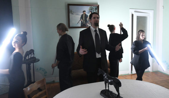 «Основная идея спектакля заключалась в том, чтобы показать Игоря Васильевича как человека, потому что за маской любого великого учёного или изобретателя всегда скрывается его человеческая сущность со своими мечтами, мыслями, какими-то переживаниями, бытовыми вопросами. Но при этом, будучи людьми увлечёнными, они даже в повседневную жизнь всегда вкрапляли моменты, связанные с работой. Именно поэтому мы разбили действия в спектакле на несколько помещений, которые есть в домике, и в каждом пытались рассказать не только общую историю про то, как произошло создание этого реактора, как началось развитие атомной промышленности в стране и в Европе, но и про то, как учёный там жил и какие эмоции испытывал. Мне кажется, нам удалось это сделать, потому что зрители, выходя со спектакля, признавались, что много раз были в домике на экскурсии, но такое видят впервые, и благодарили за это», – рассказал Никита.