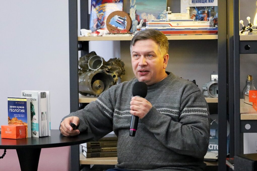 Первая часть телемоста была посвящена геологическим исследованиям и поиску горючих ископаемых. Спикером из Саратова выступил Алексей Бирюков, кандидат геолого-минералогических наук, доцент кафедры исторической геологии и палеонтологии геологического факультета СГУ имени Н.Г. Чернышевского.