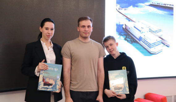 Разговор о ледоколах начался с приветственного слова руководителя ИЦАЭ Мурманска Егора Банишевского прямо с морского вокзала. Егор рассказал, что ледокол «Ленин», рядом с которым он находится, – первый в мире атомный ледокол. «Мирный атом» на судне – это была совершенно новая идея для 20-го века. «Ленин» пробивал лёд толщиной 2 метра и позволил мореплавателям расширить сроки арктической навигации. Сейчас судно пришвартовано в Мурманске и самостоятельно в море отправиться не может: реакторы удалены, а на ледоколе находится Арктический выставочный центр «Атомный ледокол «Ленин». Судно считается несамоходным и имеет свой экипаж. Помимо этого, именно на ледоколе «Ленин» располагается ИЦАЭ Мурманска.
