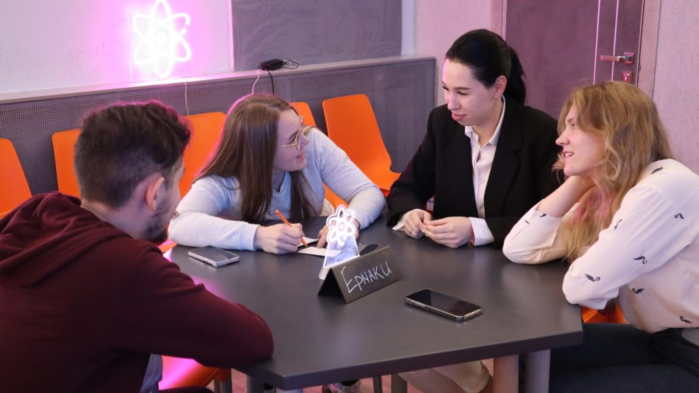После этого гости ИЦАЭ смогли применить полученные знания, играя в интеллектуальную командную игру «Адреналин» и отвечая на вопросы о ледоколах, полярниках, белых медведях и даже генетике.