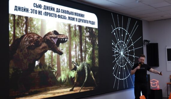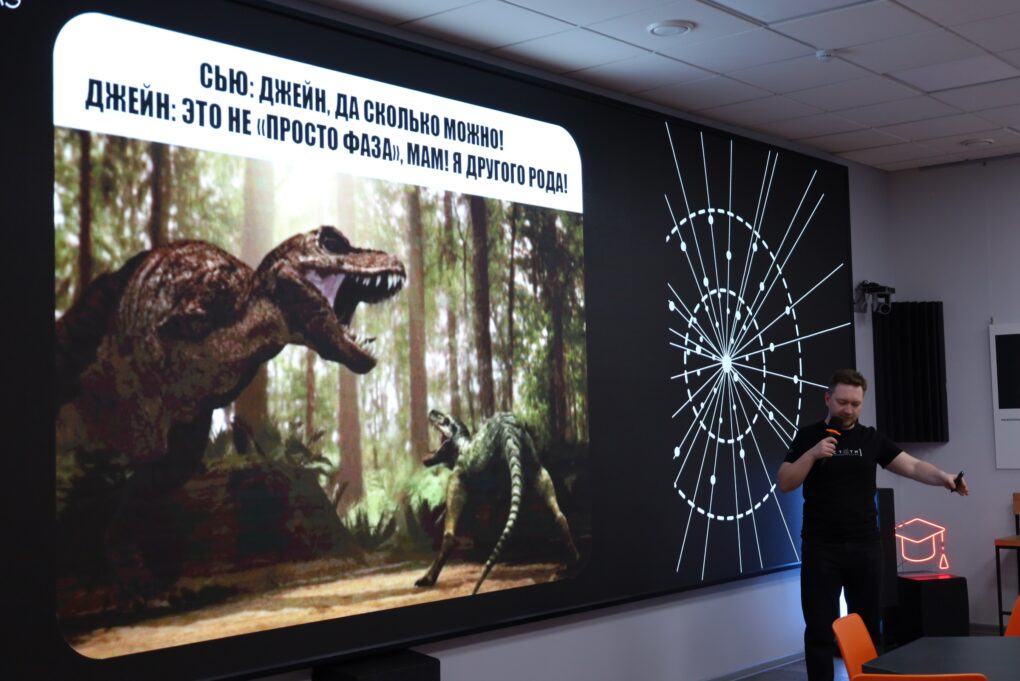 Следующий спикер – Яков Колесников, биолог, палеонтолог, сотрудник Музея геологии Центральной Сибири GEOS продолжил разбирать мемы, связанные с палеонтологией. Участники ток-шоу узнали, что, оказывается, курица – одна из ближайших ныне живущих родственников грозного тираннозавра. В 2005 году палеонтолог Мэри Швейцер обнаружила в ископаемой бедренной кости тираннозавра рекс фрагменты белой ткани и, сравнив аминокислотные последовательности коллагена динозавра с коллагеном 21 вида современных позвоночных, выяснила, что куры – самые близкие генетические родственники древнего хищника.