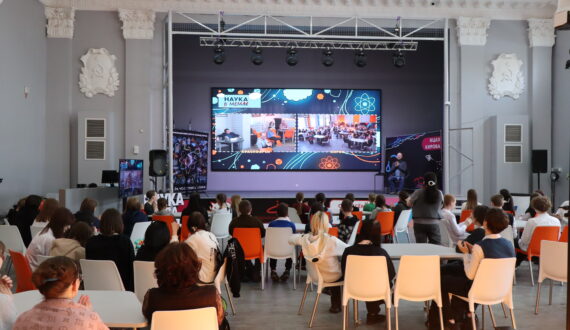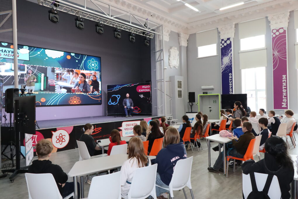 Comedy science show «Наука в мемах» в формате телемоста объединило 23 апреля аудитории и экспертов Информационных центров по атомной энергии (ИЦАЭ) Красноярска и Кирова.