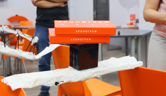Перед телемостом в центрах Саратова и Ульяновска прошёл мастер-класс «Бумажный сопромат», на котором гости строили мосты из трубочек, бумаги и скотча. В конце мастер-класса мосты проверяли на прочность с помощью тяжёлых грузов.