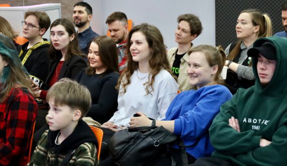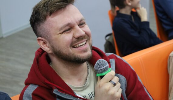 Следующим выступал Слава Назинцев, студент факультета информационных технологий и компьютерной безопасности ВГТУ. Он познакомил гостей ИЦАЭ с темой «Генетические алгоритмы, кради у природы»: «Это метод решения оптимизационных задач, где создается большое количество ботов: худшие умирают, а лучшие выживают, потом скрещиваются, мутируют и генерируют новое поколение. Каждое последующее поколение становится более приспособленным и качественным, и в итоге задача решается».