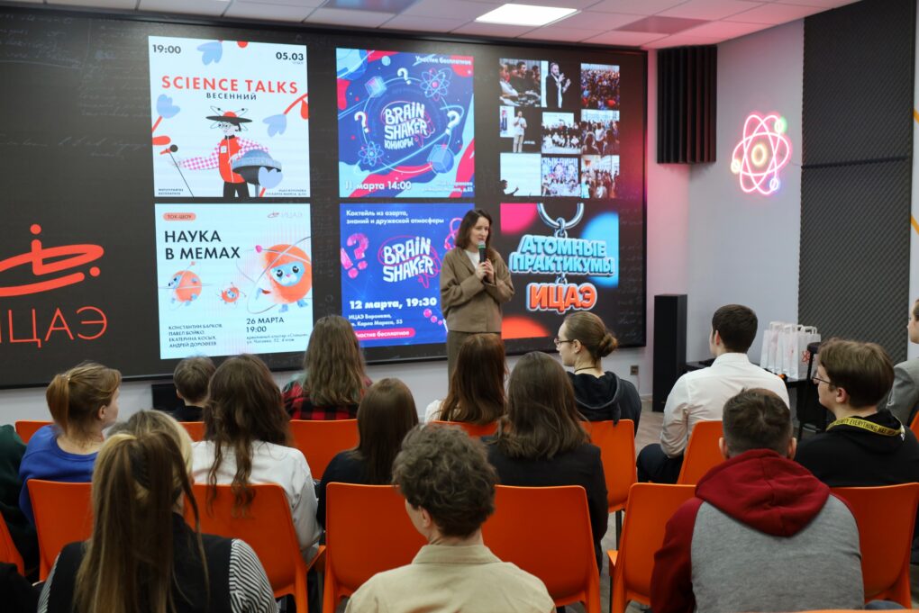 По традиции, перед началом Science Talks всех посетителей центра ждала большая игротека настольных игр от сети ИЦАЭ, а также просмотр ток-шоу «Наука в мемах».