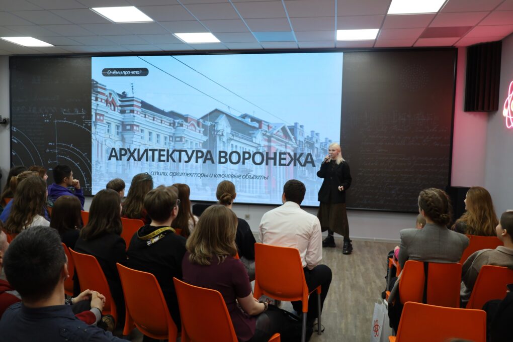 Студентка Воронежского государственного технического университета Соня Позднякова осветила тему «Современная архитектура Воронежа». Она рассказала о том, как формировался облик города, какие характерные черты отличают застройку и что воронежцев ждёт на улицах города в будущем.