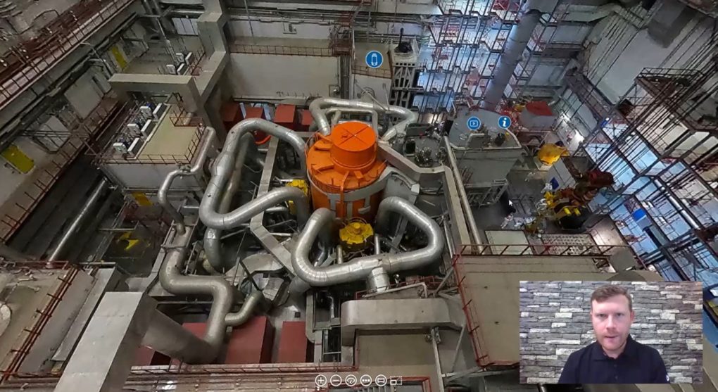 Телемост между двумя городами начался с виртуальной экскурсии в формате 360° по энергоблоку БН-800 Белоярской атомной электростанции. Проводником в мир быстрых нейтронов стал Александр Воробьев, ведущий специалист по связям с общественностью управления коммуникаций Белоярской АЭС.