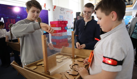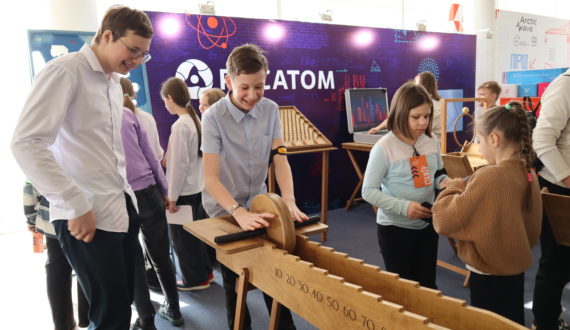 «Мне понравилось управлять ледоколом и строить башни из обечаек. Это оказалось непросто, но интересно, — поделился впечатлениями от площадки мончегорский лицеист Платон Егоров. – А там, где нужно было запускать шарики и нарабатывать изотопы для АЭС, мне помогла теория вероятности, и я набрал 27 очков. Я, кстати, понял, что это номер кобальта в таблице Менделеева».