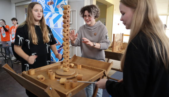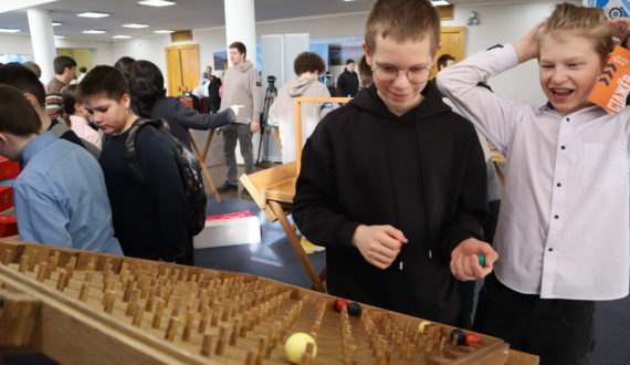 «Мне понравилось управлять ледоколом и строить башни из обечаек. Это оказалось непросто, но интересно, — поделился впечатлениями от площадки мончегорский лицеист Платон Егоров. – А там, где нужно было запускать шарики и нарабатывать изотопы для АЭС, мне помогла теория вероятности, и я набрал 27 очков. Я, кстати, понял, что это номер кобальта в таблице Менделеева».