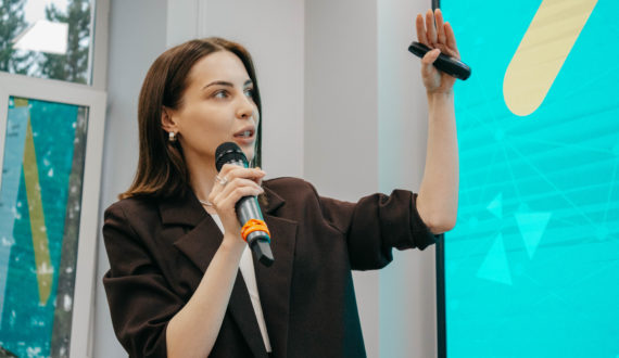 Свой рассказ она начала с основ появления загара и его цели: «Кожа человека состоит из трёх слоёв: эпидермис, дерма, гиподерма. В эпидермисе находятся кератиноциты, которые под воздействием ультрафиолетового излучения посылают сигнал меланоцитам. И те в свою очередь начинают синтезировать меланин – пигмент. Он является естественным солнцезащитным кремом для защиты кожи. Так и появляется загар. Но если инсоляция была чрезмерно высокой, то начинает развиваться эритема (покраснение кожи). Она посылает сигналы фибробластам – клеткам, которые находятся в дерме и запускают воспалительные процессы. Из-за этого меланин идёт не на верх кожи, а в более глубокие слои. Так начинается солнечный ожог».
