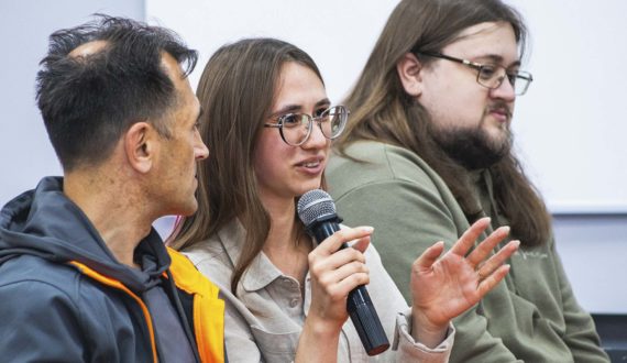 После лекции гости ИЦАЭ Томска приняли участие в научно-популярном ток-шоу «Язык Эйнштейна», в ходе которого эксперты из разных областей знания рассказали последние новости из мира науки. В роли модератора обсуждения выступил резидент стендап-клуба «Томедия» Митя Митькин. Благодаря ему обсуждение сложных новостей оказалось лёгким, понятным и смешным.
