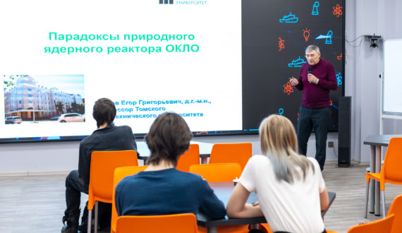 На лекции Егор Григорьевич подробно рассказал об уникальном явлении природного ядерного реактора, затронул тему естественной радиоактивности и альтернативных способов переработки отработанного ядерного топлива.